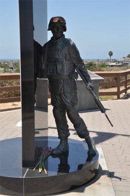 In 2003 the citizens of Newport Beach adopted the First Battalion First Marines, First Marine Division. In 2008, this memorial sculpture was "created in honor of the men and women of the 1/1 who paid the ultimate price in defending our nation and our freedom." It stands overlooking the Back Bay and Newport Harbor in Castaways Park.