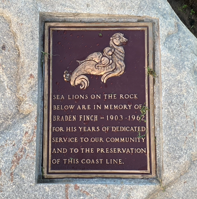 Sculpted by local artist Kay Finch in 1962 in memory of her husband Braden L. Finch, a former Newport Beach City Councilman, this bronze sculpture of a mother and baby seal were permanently mounted just below Inspiration Point in Corona del Mar in 1971.
